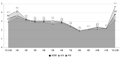 2024년 하반기 국내 노동시장이 실업률 증가와 고용률 하락의 이중고를 겪고 있다. 연말로 갈수록 노동시장 불안정성이 확대되며 경기 둔화와 구조적 문제의 영향이 본격화되고 있다는 분석이다.▲ 통계청, …