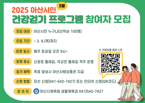아산시는 시민들의 건강한 생활 습관 형성을 위해 걷기 프로그램을 마련하고, 2025년 2월 17일부터 3월 6일까지 참여자를 모집한다. 아산시민이라면 누구나 참여할 수 있으며, 신청은 유선 또는 인터넷을 통…