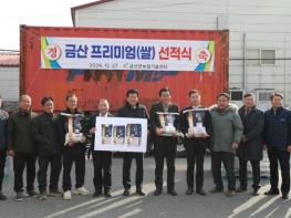 금산프리미엄쌀이 미국 수출길에 올랐다. 지난 27일 금성면 파초리에 소재한 반초영농조합에서 수출 선적식이 열렸으며 이 자리에 박범인 금산군수, 윤진호 금산안평쌀작목반 대표를 비롯한 관계자 10여 명
