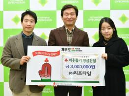 경산시 남천면 소재 ㈜리프타일은 27일 경산시청을 방문해 관내 소외계층을 위해 사용해 달라며 이웃돕기 성금 300만 원을 기탁했다.양채윤 대표는 “복지 사각지대에 놓인 이웃들과 꿈을 키워나가는 인재들