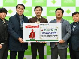 전국한우협회 경산시지부는 12월 27일 경산시청을 방문해 어려운 겨울을 보내고 있는 이웃들을 위해 사용해 달라며 이웃돕기 성금 500만 원을 기탁했다.이원천 지부장은 “어려운 이웃들이 따뜻한 연말을 보