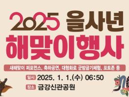 공주시는 2025 을사년(乙巳年) 새해를 맞아 공주시의 발전과 시민 화합을 기원하는 새해맞이 행사를 1월 1일 금강신관공원에서 개최한다고 26일 밝혔다. 시는 2025년 새해를 시민들과 함께 맞이하며 희망과