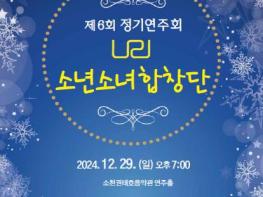 12월 29일 오후 7시, 소천권태호음악관 연주홀에서 (사)소천권태호기념사업회가 주최, 주관하는 ‘제6회 나리소년소녀합창단 정기연주회’가 개최된다.나리소년소녀합창단은 동요 ‘봄나들이’의 작곡가인