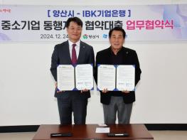 양산시는 24일 IBK기업은행과 관내 중소기업의 자금 대출에 도움을 주는'중소기업 동행지원 협약보증 사업(이하 동행지원 사업)'추진을 위한 업무협약을 체결했다고 밝혔다. 동행지원 사업은 기존에 시가 운