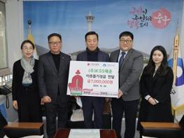 ㈜KSS해운에서 24일 부산 중구를 방문하여 이웃돕기 성금 700만원을 기탁했다. 최진봉 중구청장은 “어려운 이웃을 위해 해마다 성금을 기탁 해주시는 ㈜KSS해운 관계자분들께 매우 감사드리며, 소외계층