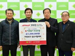 자연보호 경산시협의회는 24일 경산시청을 방문해 이웃돕기 성금 100만 원을 기탁하며 이웃사랑을 실천했다.자연보호 경산시협의회는 매년 하천과 저수지 등에서 자연정화 활동을 비롯해 산불 예방 홍보, 생