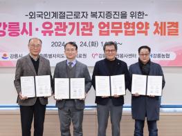 강릉시와 외국인계절근로자 관련 유관기관은 24일 오후 2시 시청 8층 시민사랑방에서 외국인 계절근로자 지원을 위한 업무협약을 체결한다. 협약식에는 김홍규 강릉시장, 김종욱 강릉의료원장, 최길영 강릉