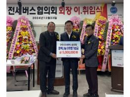 경북전세버스조합 구미시협의회는 지난 23일 임원과 회원사 대표 등 50여 명이 참석한 가운데 제7대 회장 이·취임식 및 기부금 전달 행사를 열었다.행사는 전임회장과 신임회장의 이·취임사, 감사패 전달,