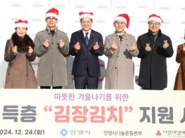 안양시는 24일 오전 9시 50분 시청 정문에서 ‘저소득층 김장김치 나눔행사’를 개최했다.김치 나눔행사는 안양시와 안양시지역사회보장협의체(나눔운동본부)가 주관했으며, 최대호 안양시장을 비롯해 구재
