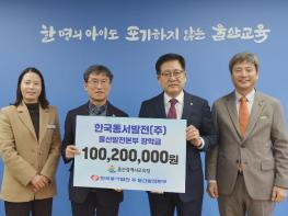 한국동서발전(주) 울산발전본부가 24일 울산광역시교육청에 장학금 1억 20만 원을 전달했다. 시교육청 접견실에서 열린 전달식에는 천창수 교육감, 권명호 한국동서발전(주) 사장, 임승환 울산발전본부장