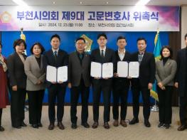 부천시의회는 23일 법률 자문과 소송수행, 의정활동 지원 등을 위해 제9대 고문변호사를 위촉했다.2010년부터 운영된 고문변호사 제도는 풍부한 경험과 전문성으로 다양한 시민의 정책수요에 맞는 의정활동