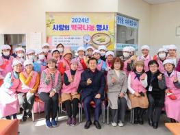 진주시여성자원봉사대는 23일 판문동 소재 노인복지시설 상락원에서 300여 명의 어르신을 대상으로 사랑의 떡국 나눔 행사를 실시했다. 이날 행사는 연말을 맞아 지역 어르신들과 따뜻한 정을 나누기 위해