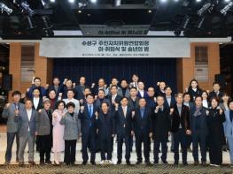 대구 수성구는 지난 30일 호텔라온제나에서 수성구 주민자치위원장연합회장 이·취임식을 개최했다.김대권 수성구청장, 조규화 수성구의회 의장, 시·구의원, 각 동 주민자치위원장 등 150여 명이 이·취임식에