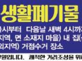 거제시는 내년 1월 1일, 신정 휴일에는 생활폐기물 수거 대행업체의 휴무가 시행됨에 따라 일반생활·음식·재활용, 대형생활폐기물이 수거되지 않는다고 밝혔다. 이에 따라 생활폐기물은 오는 12월 31일에는