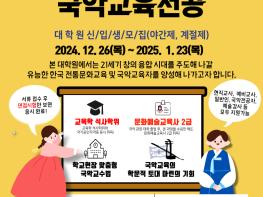 부산교육대학교 교육대학원이 창의적 전통문화 교육과 국악교육의 미래를 이끌어갈 인재 양성을 위해 ‘창의전통문화 및 국악교육전공’ 신입생 모집을 실시한다.이번 모집은 전통문화의 계승과 교육적 가치