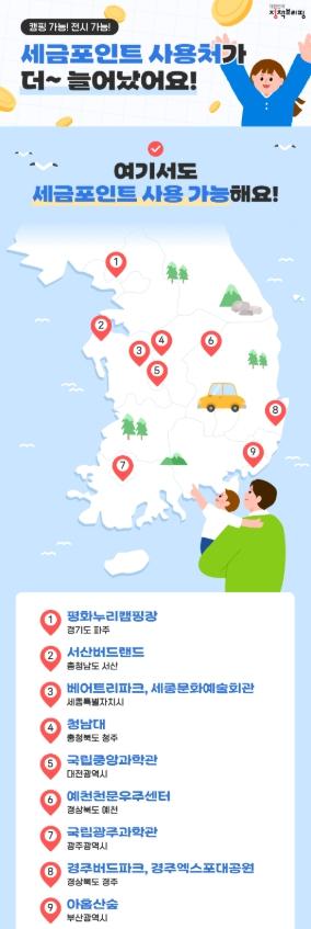 세금포인트 사용처 캠핑장, 과학관 등으로 확대