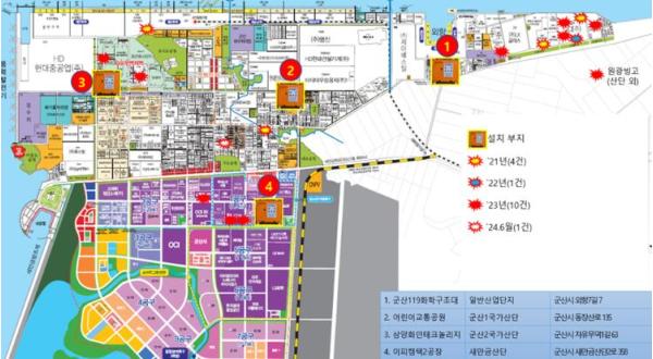 군산시는 화학물질안전원과 함께 ▲군산시 내 주요 화학물질 취급 사업장 밀집 지역 ▲화학사고 발생 가능성 ▲방재함의 활용성 및 접근 용이성 등을 고려해 군산국가1?2산단, 군산일반산단 및 새만금국가산단 등 4개소에 각각 분산 설치했다.