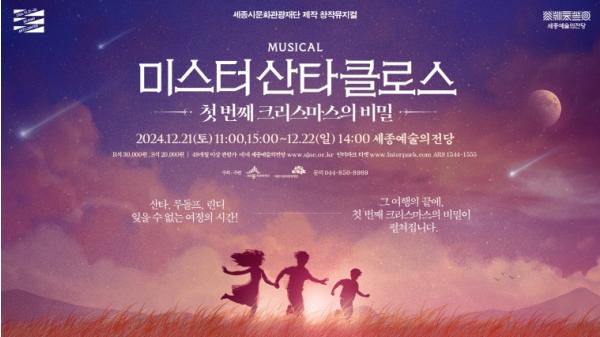 세종시문화관광재단(대표이사 박영국)은 오는 12월 21일부터 22일까지 세종예술의전당에서 창작뮤지컬 '미스터 산타클로스 ; 첫 번째 크리스마스의 비밀'을 선보인다고 밝혔다.