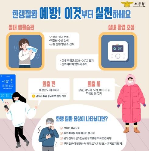 박지영 예방안전과장 “한파는 막을 수 없지만 한랭질환은 충분히 예방할 수 있다”며 “요즘같이 한파가 계속되는 날에는 한랭질환 예방수칙을 반드시 준수하고, 한랭질환 발생 시에는 신속히 119에 신고해달라”고 전했다.