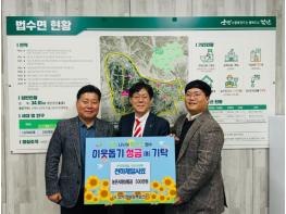 정환영 법수면장은 “법수면을 위한 아낌없는 후원에 감사드리며 앞으로도 취약계층 복지 증진을 위해 다양한 방법으로 노력하겠다”라며 “기탁해 주신 상품권은 도움이 필요한 분들에게 뜻깊게 사용하겠다”고 말했다.