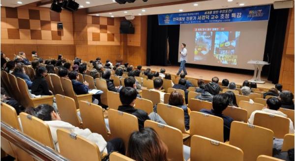 이날 특강에는 쌀쌀한 날씨에도 김돈곤 군수와 청양군의회 의장을 비롯해 군민 150여 명이 참석하며 높은 관심을 드러냈다.