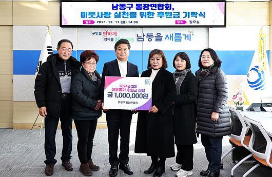 인천시 남동구는 통장연합회로부터 2024년 연말 이웃돕기 후원금 100만 원을 전달받았다고 20일 밝혔다.
