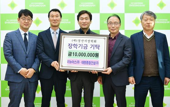 (재)경산시장학회는 19일, 리뉴어스㈜(대표이사 권지훈)와 태령종합건설㈜에서 지역 인재 육성을 위해 각각 장학금 1,000만 원을 기탁했다고 밝혔다.