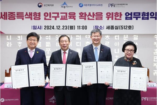 세종특별자치시교육청은 12월 23일에 세종시청 세종실에서 세종특화형 인구교육 확산을 위한 업무협약을 체결했다.