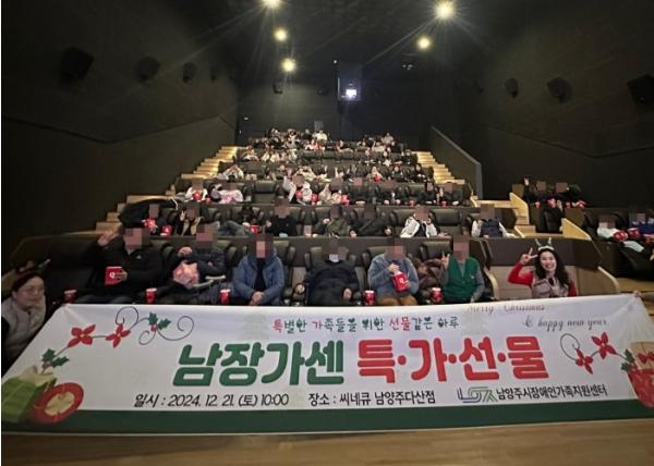 남양주시장애인가족지원센터는 지난 21일 씨네Q 남양주다산점에서 장애인 가족 60명과 함께 영화관람 행사를 진행했다고 23일 밝혔다.