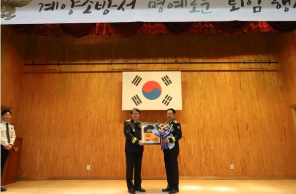 계양소방서는 23일 본서 강당에서 차상철 소방령(예방안전과장)의 35년 공직생활을 마무리하는 퇴임식을 개최했다고 밝혔다.