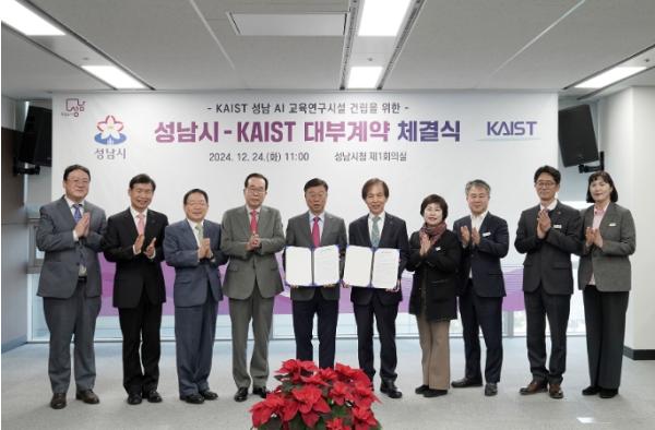 성남시는 24일 KAIST(한국과학기술원)와 인공지능(AI) 교육연구시설 건립부지 대부계약 체결식을 개최했다. 이번 계약은 KAIST가 성남시에 최첨단 AI 교육 및 연구시설을 조성하는 첫걸음으로, 성남시가 4차 산업혁명 시대를 선도하는 AI 첨단도시로 도약하는 중요한 전환점이 될 것으로 기대된다.