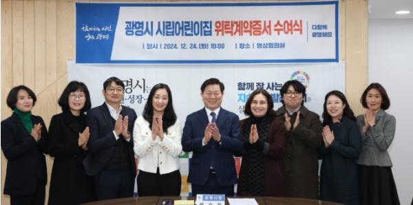 광명시는 24일 오전 시청 영상회의실에서 시립어린이집 6개소 위탁운영자에게 위탁계약증서를 전달했다.