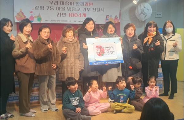 광명시 광명7동 지역사회보장협의체는 지난 23일 시립 무지개 어린이집과 ‘우리의 마음이 함께 라면’을 주제로 광명7동 마을공유냉장고에 라면 천사(1004)개를 전달했다.