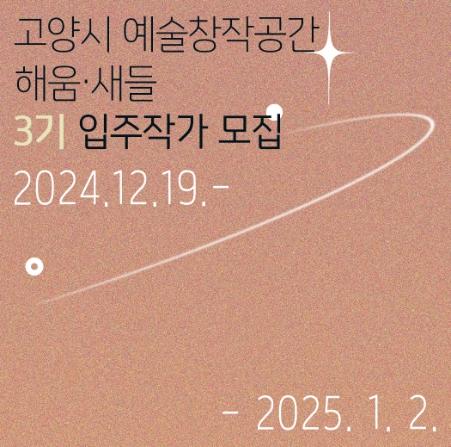 고양특례시에서는 2025년도 예술창작공간 ‘해움’과 ‘새들’의 입주작가(3기)를 모집한다.