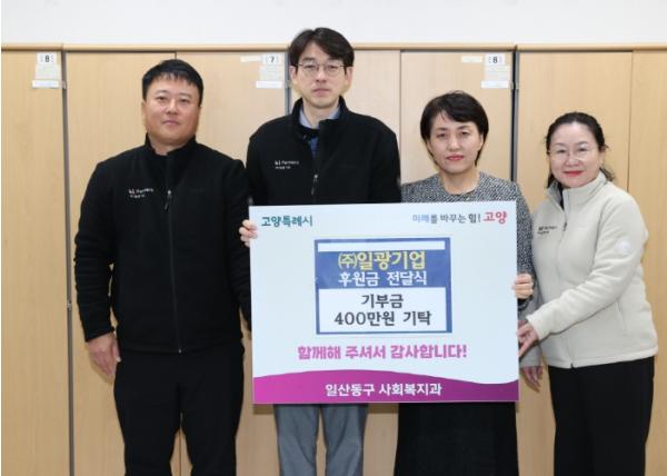 이날 ㈜일광기업 류제만 이사는 일산동구청에 방문해 기부금을 전달했으며, “기업의 사회 환원 활동을 통해 어려운 이웃을 돕고자 기부를 결정했다. 우리가 전달하는 마음이 따뜻한 지역사회를 만들어가는 소중한 발걸음이 되길 바란다”라고 말했다.