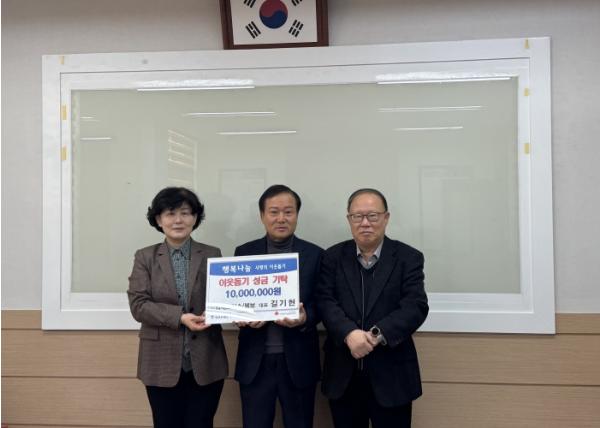 ㈜영재모터스는 지난 11월 25일 청북읍 관내 어려운 이웃을 위해 사용해 달라며 성금 1천만 원을 평택시 청북읍 행정복지센터(읍장 안순복)에 기부했다.