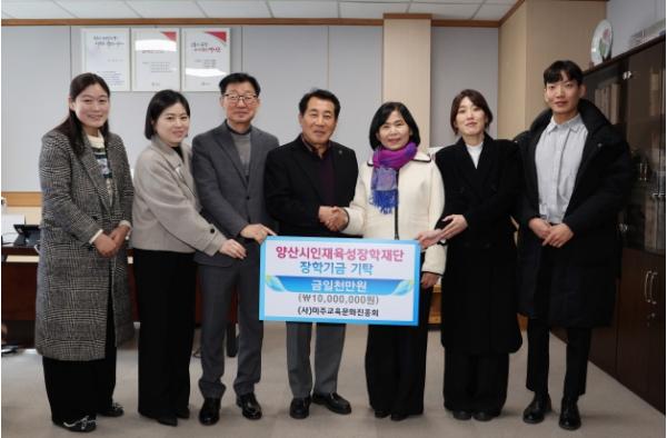 (사)미주교육문화진흥원은 지난 23일 지역 인재 육성을 위한 장학금 1,000만원을 양산시인재육성장학재단에 기탁했다.