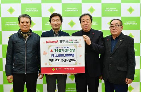 자연보호 경산시협의회는 24일 경산시청을 방문해 이웃돕기 성금 100만 원을 기탁하며 이웃사랑을 실천했다.