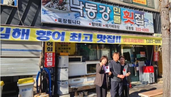 착한가게 159호점으로 지정된 ‘낙동강민물횟집 내동점은 내동에 위치한 향어를 전문으로 판매하는 식당이며, 김해지역에 꾸준한 후원으로 지역복지발전에 힘쓰고 있으며, 꾸준히 지역사회 복지증진에 보탬이 되고 있다.