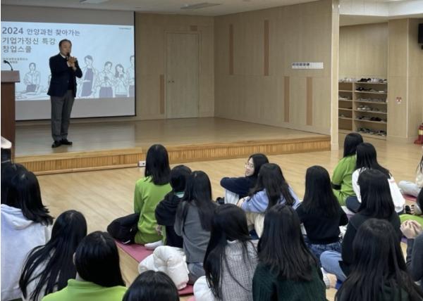 안양과천‘찾아가는 기업가정신스쿨’사업은 지역사회 기업과 연계한 산학연계 창업교육중심 프로그램으로 자리잡아 학교 현장에서 큰 지지를 받고 있다. 지난 9월 안양공업고등학교에서 ‘GF 머시닝 솔루션즈(주)’ 대표이사의 강의를 시작으로 오늘 대안여자중학교에서 진행되는 안양과천상공회의소 배해동 회장의 강의로 막을 내렸다.