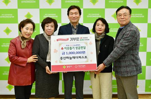조현일 경산시장은 “뜻깊은 나눔을 실천해주신 중산하늘채더퍼스트 주민분들께 감사드린다”며, “기탁된 성금은 주민들의 따뜻한 마음을 담아 도움이 필요한 곳에 소중히 전달하며, 이웃과 함께 살아가는 따뜻한 경산시를 만드는 데 최선을 다하겠다”고 밝혔다.