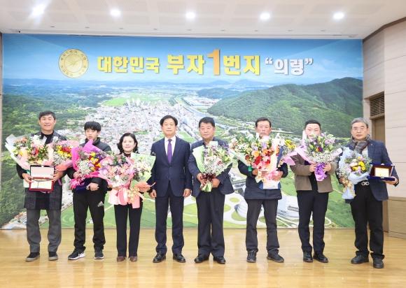 도지사 및 군수 표창패를 황용환 의령군 산악연맹회장 외 3명, 의장 표창패를 박서원 의령군 체육회 이사 외 3명, 교육장상을 의령여자고등학교 김나연 학생, 국회의원상을 김종호 의령군 족구회 전무이사 외 4명, 경상남도 체육회장과 의령군 체육회장 표창을 강동길 의령군 테니스협회장 외 6명, 의령군 체육회 장학증서를 의령고등학교 김재민 학생 외 2명이 수상했다.