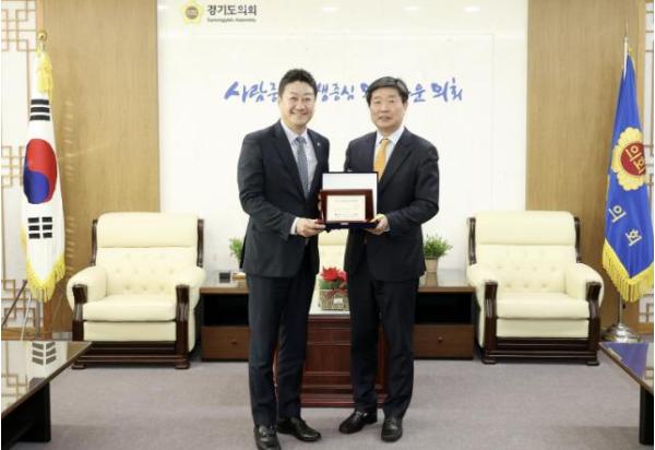 김 의장은 “여러 일정상 시상식 때 직접 참석하지 못해 아쉬움이 컸는데, 오늘 이렇게나마 상패를 전달받게 돼 기쁘다”라며 “이 상을 1,410만 도민 행복과 경기도 발전을 위해 더욱 정진하라는 뜻으로 알고 최선을 다해 보답하겠다”라고 소감을 밝혔다.