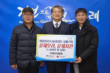 전남 구례군은 구례오리협회가 지난 23일 어려운 이웃을 위해 훈제 오리 및 훈제 치킨(총 1,500만 원 상당)을 군에 기부했다고 밝혔다.