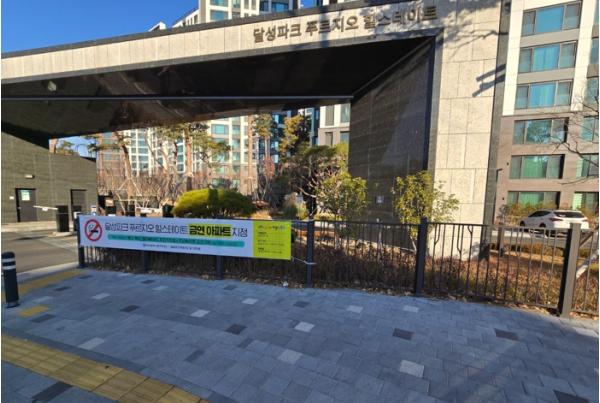 이번에 금연아파로 지정된 ‘달성파크 푸르지오 힐스테이트아파트’는 1,498세대 중 932세대(62.2%)가 동의해 금연아파로 지정됐다. 금연 아파트 정착을 위해 계도기간을 거쳐 2025년 6월 17일부터 공용 공간(복도, 계단, 엘리베이터, 지하주차장)에서 흡연하다 적발되면 과태료 5만 원을 부과할 예정이다.