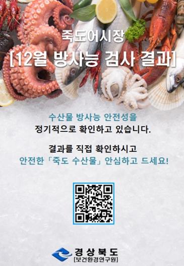 삼중수소 등 방사능 검사 결과는 연구원과 도 홈페이지에 게시해 누구나 확인할 수 있도록 했으며, 특히 거점수산시장 상인회에는 성적서와 QR코드를 배포해 시장을 방문한 소비자가 결과를 쉽게 확인할 수 있도록 조치했다.