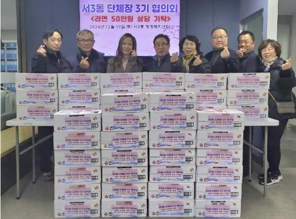 김혜숙 서3동장은 “어려운 이웃을 위해 기부해 주신 서3동 단체장 3기 협의회 회원님께 감사드리며, 지원해 주신 기탁품은 생활에 어려움을 겪고 있는 취약계층에 잘 전달하겠다”라고 말했다.