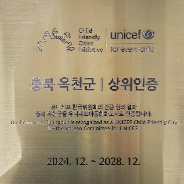 옥천군이 유니세프 한국위원회로부터 ‘아동친화도시 상위인증’을 획득했다고 24일 밝혔다.
