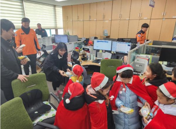 서산소방서는 지난 24일 크리스마스 이브에 ‘서산경찰서직장어린이집’에서 깜짝 방문하여 근무자들을 위해 작은 공연과 정성이 담긴 선물을 전달했다고 전했다.