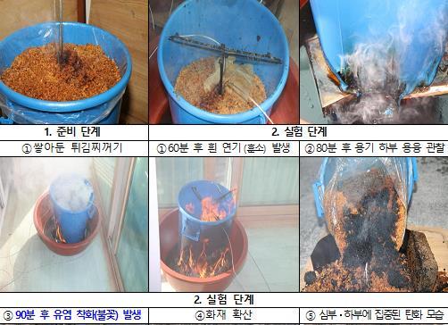 이번 실험의 배경은 최근 3년간 대전지역 치킨집 등 튀김요리 업소에서 발생했던 총 13건의 화재 대부분이 튀김찌꺼기 주변의 소훼정도가 커 찌꺼기에 의한 자연발화로 의심은 되지만 정확한 원인이 규명되지 않아 이를 밝히고자 한 것이다.
